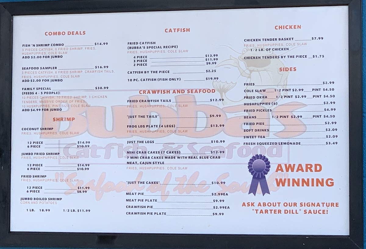 Welcome to Bubba's Catfish & Seafood, where the essence of Southern coastal cuisine comes alive at 622 Carpenter Dam Rd, Hot Springs, AR. This charming eatery specializes in serving up some of the finest fried catfish around, perfectly golden and crispy, each bite bursting with flavor. A customer favorite is the seafood platter, which showcases a delightful combination of fried catfish, juicy shrimp, and golden hush puppies.
